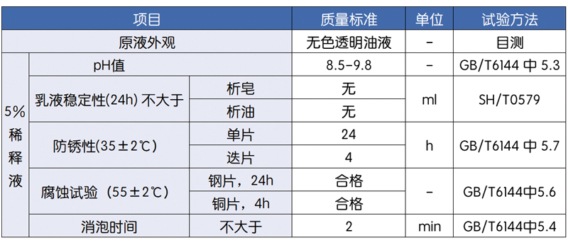 2. 防腐抗菌性:本品选用对细菌、霉菌有较强抗御能力的化学物质作为基本成分,不易腐败变质,极少异味,是一种性能 优良稳定的半合成切削液。